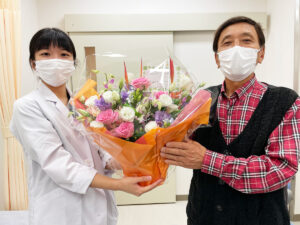 ダヴィンチ2台体制が稼働し始めました 2022年10月20日 お知らせ ダヴィンチ2台目を導入し、10/3より稼働し始めました。 ダヴィンチによる手術1000件目と2台目導入後初めての患者様の退院時に祝花を贈呈しました。