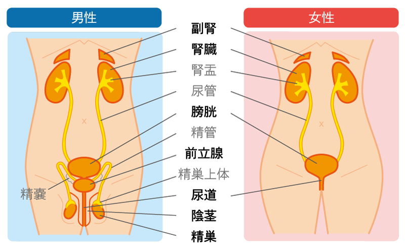 診療分野 臓器について 1.副腎 2.腎 3.膀胱 4.前立腺 5.尿道 6.陰茎 7.精巣 症状について 血尿 尿混濁 尿勢低下 尿線途絶 腹圧排尿 頻尿 急な尿意 尿意切迫感 尿失禁 残尿感 排尿後尿滴下 痛み がん・がん治療に関連する症状 皮膚の乾燥 かゆみ 色素沈着(腎不全関連) 性機能関連 疾患と治療について 副腎腫瘍 水腎症 腎不全 悪性腫瘍 がんゲノム医療 尿路結石 排尿・蓄尿障害 感染症 男性不妊 その他 泌尿器科の各種治療について 薬物療法 手術関連 薬物療法 抗菌薬 腎不全 腎がん 腎盂がん・尿管がん・膀胱がん 前立腺がん 精巣腫瘍 尿路結石 前立腺肥大症 神経因性膀胱 過活動膀胱 腎盂腎炎 膀胱炎 性感染症 男性不妊 手術関連 ロボット手術 腹腔鏡手術 開腹手術(腎移植を中心に) 経尿道的・尿路内視鏡手術 上部尿路→TUL、PCNL、UTUC-ablation 下部尿路→HoLEP、TURBTなど PDD ESWL 人工尿道括約筋埋没術 尿路変更(変向)・尿管ステント ボトックス膀胱壁内注入療法 前立腺生検 セカンドオピニオンについて